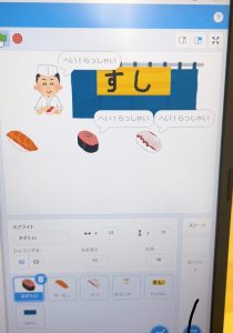 Scratchの教材に「回転寿司」という教材があるのですが、その教材にアレンジを加えてくれました!