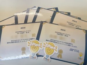 2023年度に実施したタイピングバトルで、ランクインした回数が多かった生徒には、表彰状とオリジナルステッカーをプレゼントしました!