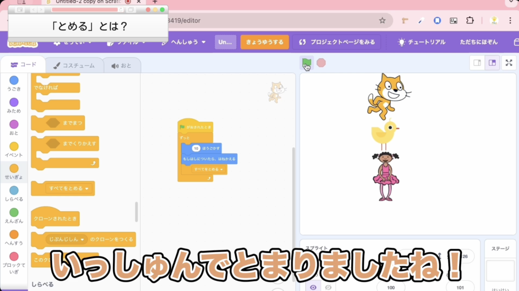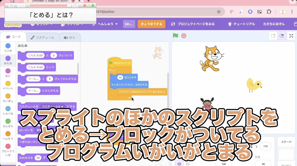 3. 高度な制御を実現!「スプライトの他のスクリプトを止める」
