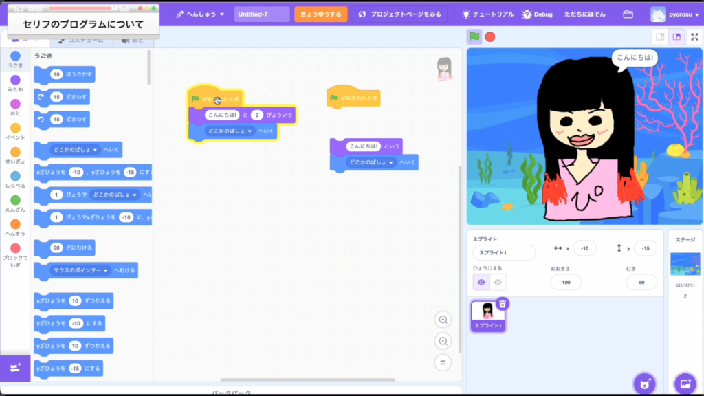 当教室でも、Scratchを使って「作る→見せる→反応が返ってくる」体験を大事にしています。