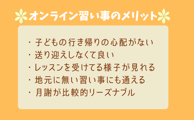 もちろん直接通うことにもメリットがありますが、オンラインで習い事をすることでしか得られないメリットがあるんですね。