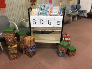 内容は「MinecraftでSDGsを考えよう!」として、図書館にある本を使いながらミッションをクリアしていくイベントでした。