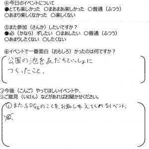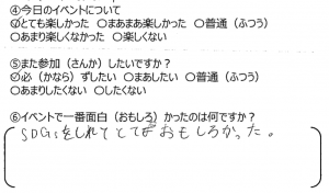 今後やってほしいイベントとして、「またSDGsのことをおしえてくれるイベント」と書いてくれている子もいました!嬉しいですね☺️