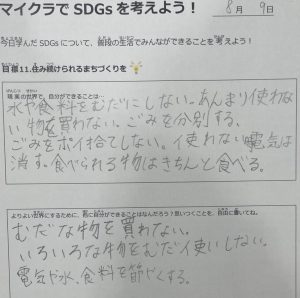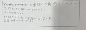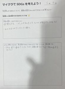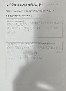 また、できることを複数書いてくれる子が多く、より良い世界にするためにできることを一生懸命考えてくれました。