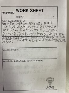 その後、プログラミング的思考の練習として、まずはゴール(自分の理想の家)を細かく書いてもらいました。