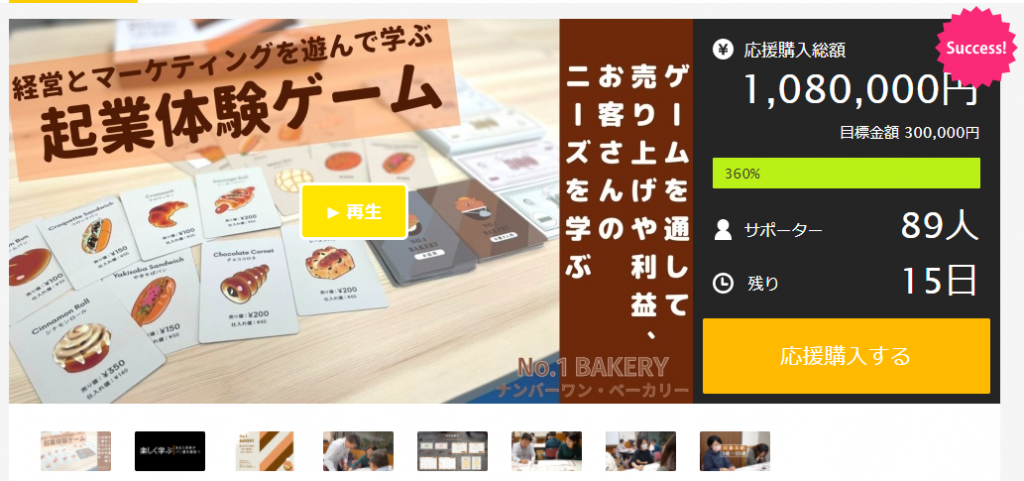 現在の達成率は360%!応援購入総額は100万円突破!!