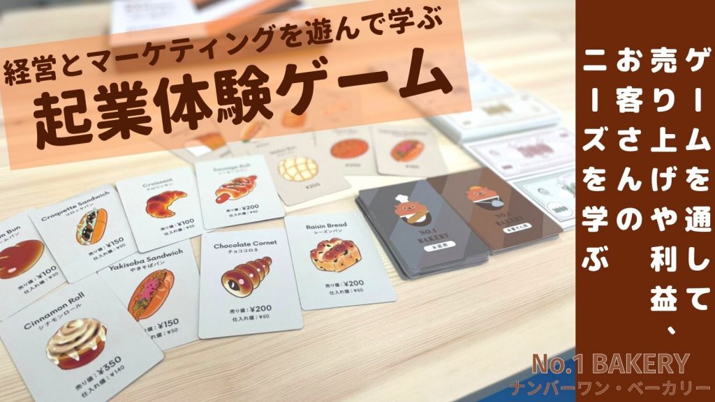 ナンバーワン・ベーカリーは、マーケティング・会計・経営が学べる新感覚「起業体験ボードゲーム」で、小学三年生から遊ぶことができます。