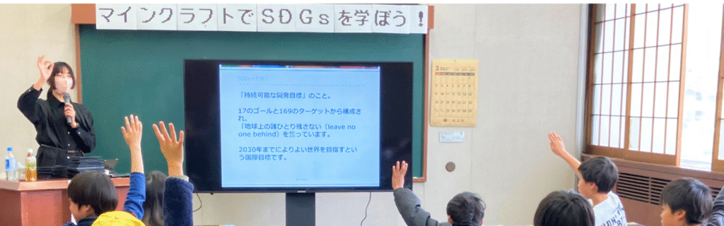 マインクラフトの世界の中でオリジナルミッションを通してSDGsを学べるものと、